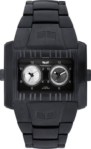 Vestal Dph002 Duophonic Mens Watch - Band Color: Black Metal, Band Width: 24mm near case, 22mm near clasp / shutter, iris color: Black, Case: Black + Square-shaped, Case Finish: Flat + Stainless Steel, Case Thickness: 12mm Case width: 44mm , 49mm with crown, Clasp / Buckle: Deployment, Dial: Black + analog, Hand Color: Multicolor, Movement: Japanese + quartz, Time Zones: Dual, Water Resistance: 5 atm, Other Features: Dual time, Vestal Dph002 Duophonic Mens Watch.
