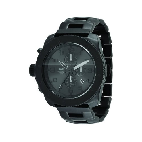 Vestal Res006 Restrictor Mens Watch - Band Color: Black Metal, Band Width: 24mm near case, 24mm near clasp / shutter, iris color: Black, Case: Black + Circle-shaped, Case Finish: Chrome + Stainless Steel, Case Thickness: 13mm Case width: 50mm , 55mm with crown, Clasp / Buckle: Fold over push button deployment, Dial: Black + analog, Hand Color: Multicolor, Movement: Japanese + quartz, Time Zones: Single Water Resistance;: 10 atm;, Vestal Res006 Restrictor Mens Watch.